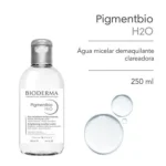 Pigmentbio H2O é a primeira água micelar clareadora com ativos clareadores que limpa, demaquila e uniformiza a tonalidade da pele. As micelas contidas em sua fórmula eliminam as impurezas, a maquiagem e resíduos de poluição sem obstruir os poros e respeitando perfeitamente o equilíbrio da pele. Ao mesmo tempo, a exclusiva patente LumiReveal contém azelato de lisina e andrographolide, dois potentes clareadores com eficácia dermatologicamente comprovada para uniformizar e prevenir novas hiperpigmentações, dia após dia. Higiene sem enxágue Indicado: Para todos os tipos de pele. Benefícios: – Pele 93% limpa de livre de impurezas logo após o uso. – Aprovada como higiene clareadora por 90% das usuárias. Modo de Usar: Higiene sem enxágue. Fórmula hipoalergênica, segura para rosto, olhos e pescoço, dermatologicamente testada. Pode ser utilizada todos os dias para higienizar e demaquilar a pele. Ideal para uso associado com outros cuidados clareadores, como Pigmentbio C Concentrate. Sem álcool, sem corantes, sem perfume, sem sabão, sem parabenos. pH fisiológico.
